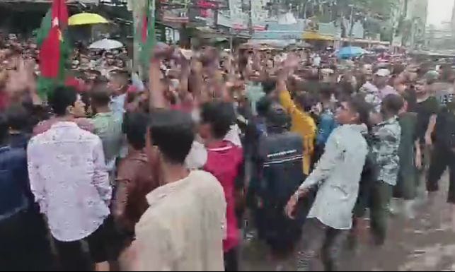 নোয়াখালীতে: সোমবার দুপুরে জেলা শহর মাইজদীতে ছাত্রদলের উদ্যোগে বিক্ষোভ সমাবেশ অনুষ্ঠিত হয়, যেখানে স্বেচ্ছাসেবক দলসহ অন্যান্য অঙ্গসংগঠনের নেতাকর্মীরাও অংশ নেন।
