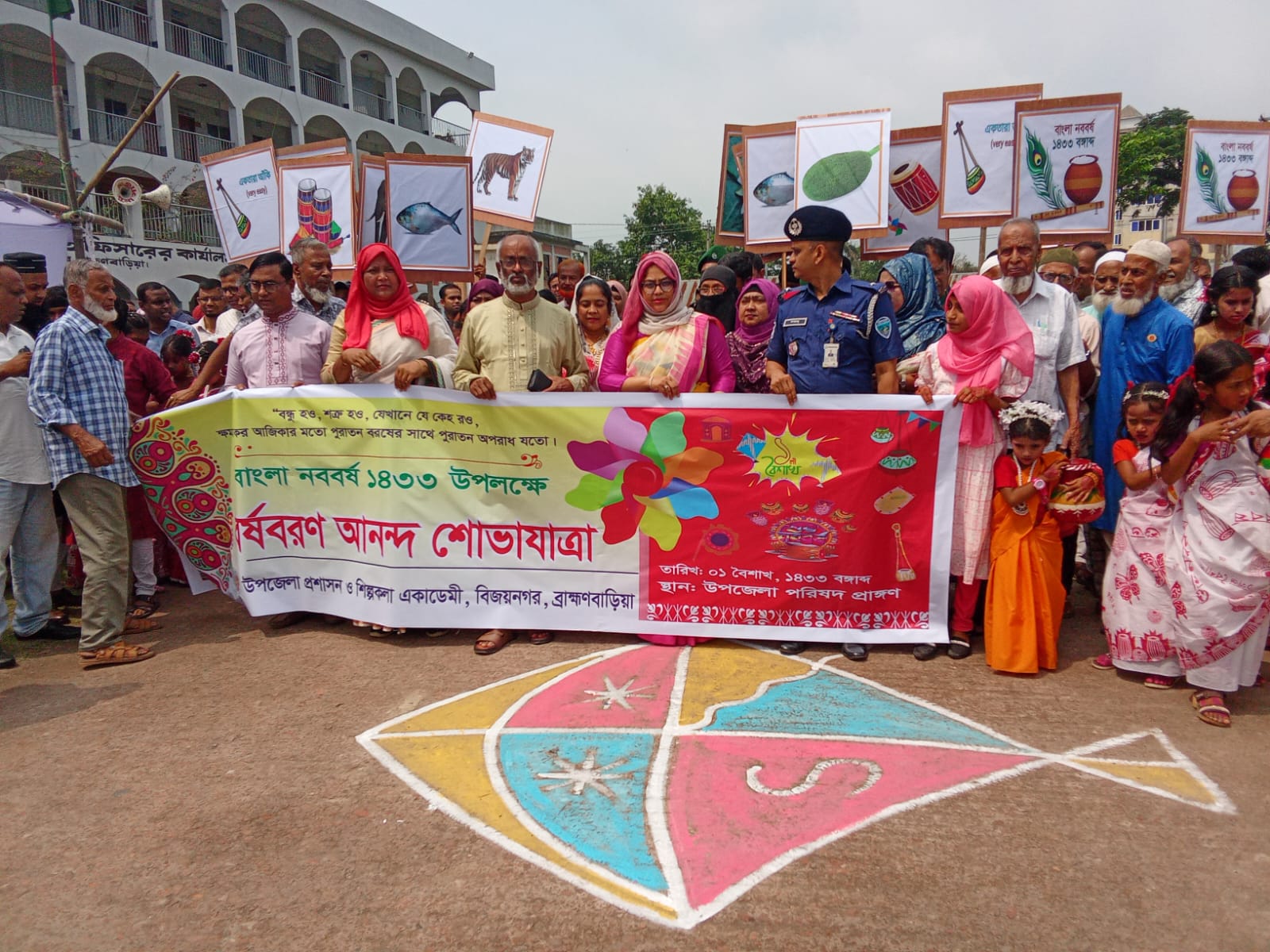 মঙ্গলবার (১৪ এপ্রিল) সকালে উপজেলা পরিষদ চত্বর থেকে একটি বর্ণিল আনন্দ শোভাযাত্রা বের করা হয়। শোভাযাত্রাটি উপজেলার বিভিন্ন প্রধান সড়ক প্রদক্ষিণ করে। এতে বিভিন্ন শিক্ষা প্রতিষ্ঠানের শিক্ষার্থী, সরকারি কর্মকর্তা ও রাজনৈতিক নেতৃবৃন্দ স্বতঃস্ফূর্তভাবে অংশগ্রহণ করেন।
